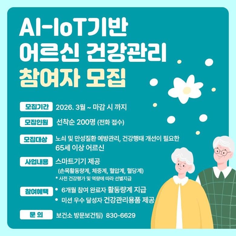 군 보건소 관계자는 “디지털 기술을 활용한 상시 건강관리 체계를 통해 어르신들의 자가 건강관리 능력을 높이고, 만성질환 악화를 예방하는 데 도움이 될 것으로 기대한다”며 “지역 어르신들의 많은 관심과 참여를 바란다”고 말했다.