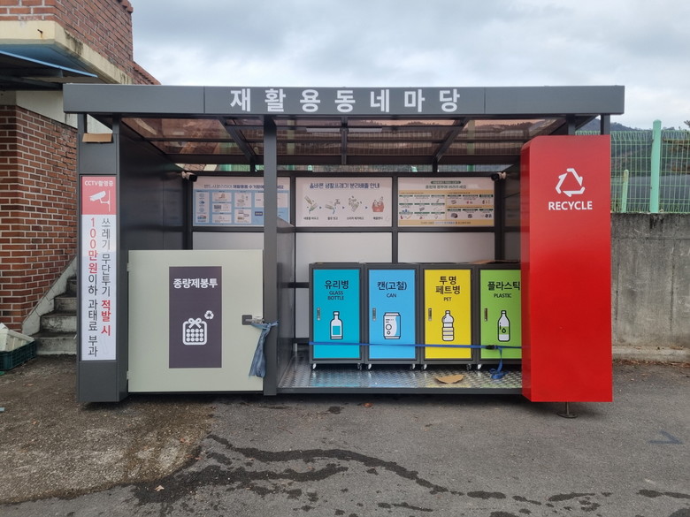 이번에 구축한 재활용 동네마당은 군민들이 일상생활에서 발생하는 페트병, 캔, 종이, 유리병 등 재활용 가능 자원을 손쉽게 배출할 수 있도록 조성한 공공 분리배출 공간으로, 접근성이 좋은 마을회관 주변과 주거 밀집 지역을 중심으로 설치됐다.