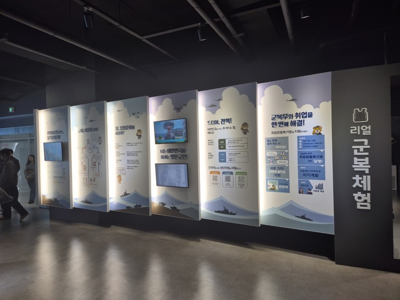 또한 '병역 진로 설계지원센터'에 가장 인기 있는 곳은 실전에 가까운 레이저 사격, 해상입체작전 VR, 팝 드론 등을 게임으로 즐길 수도 있고, 육·해·공군 군보급품과 전투 장비 등 한눈에 볼 수가 있으며 이외 군복 입기, 사진 명소 등 다양한 프로그램을 운영하고 있다.