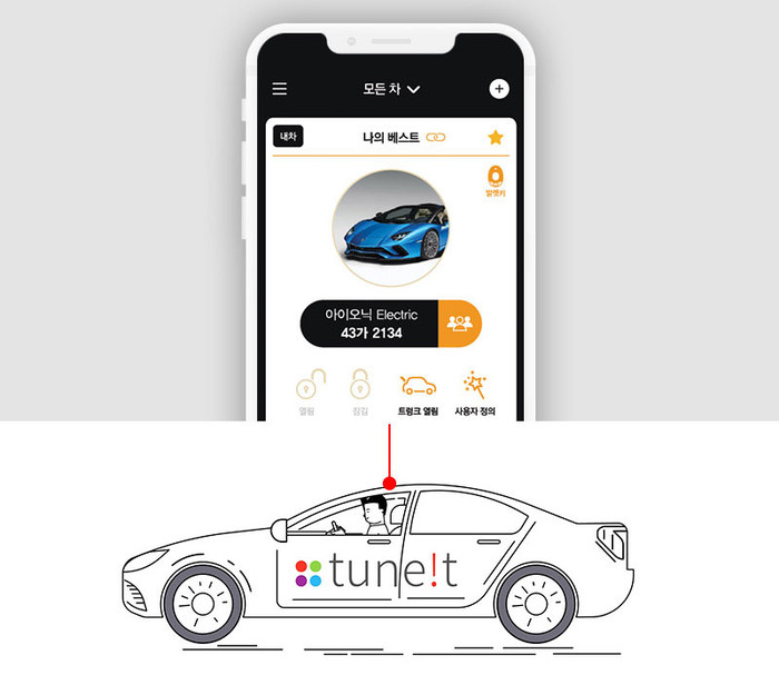 실물 자동차 키 없이 모바일 앱으로 이용 가능한 디지털 키, 튠잇 ‘아차키’ 솔루션 적용