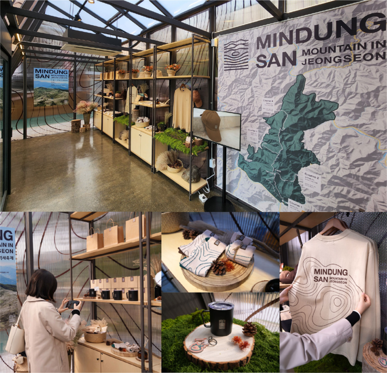 현재 민둥산 브랜드는 억새꽃축제 운동장의 브랜드관과 기념품, 등산코스 안내사인, 옹벽과 마을입구 조형물로 정선 남면 무릉리 마을에서 만나볼 수 있다.