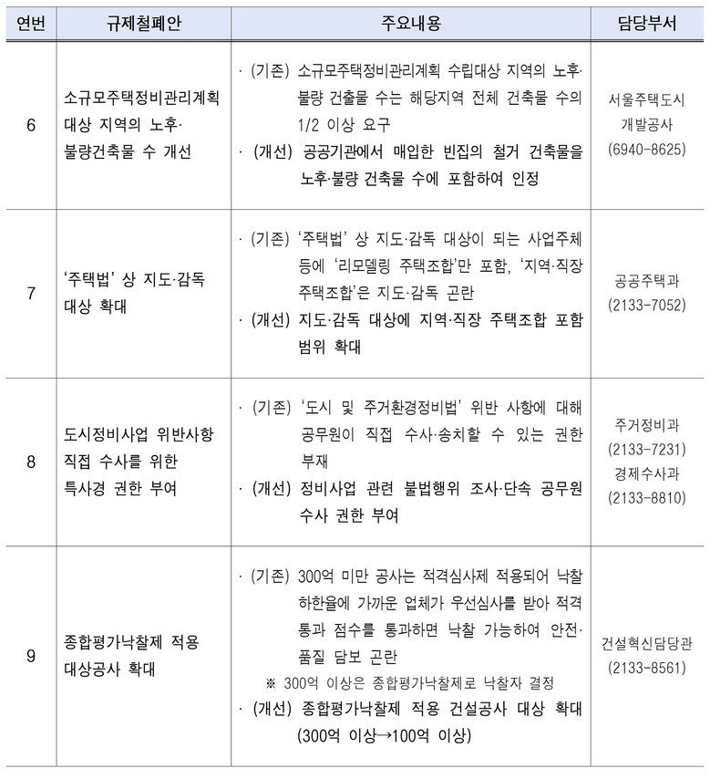 - 주택조합‧정비사업 관리 강화로 시민 재산권 보호, 건설 품질 향상위한 제도 개선도
