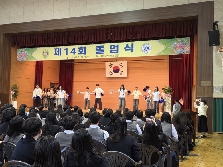 3년간 성실히 생활한 졸업생 220명이 졸업의 결실을 맺었다. 이날 졸업식에는 졸업생과 학부모, 교직원 등이 참석한 가운데 국민의례를 시작으로 졸업장 수여, 대내상 수여 및 상장 전달, 학교장 훈사, 학교운영위원장과 학부모회장의 축사, 학급영상 시청 순으로 진행됐다. 특히 졸업생들이 직접 제작한 학급 영상 상영은 3학년의 즐거움과 아쉬움이 가득하여 모두가 함께 성장의 결실을 나누는 뜻깊은 자리로 마무리됐다. 대전도안중학교는 앞으로도 학생 한 명 한 명의 성장을 지원하는 교육을 지속해 나갈 계획이다.