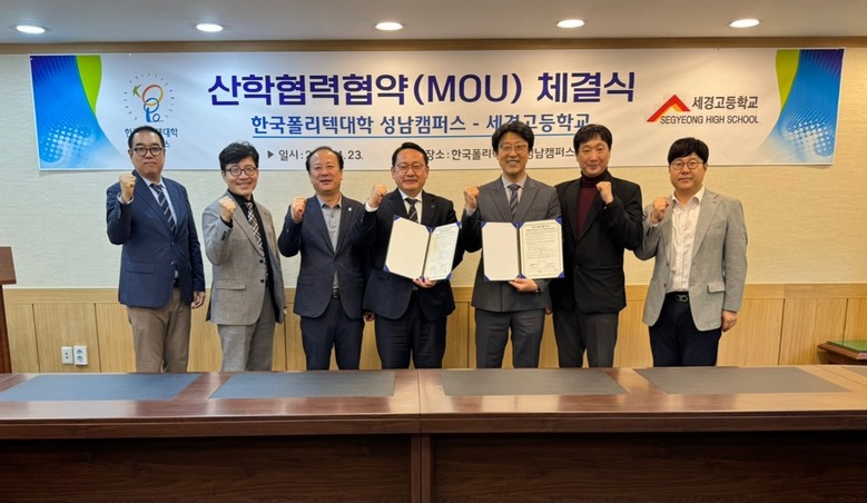[파주시 세계타임즈=송민수 기자] 세경고등학교(교장 장계홍)는 지난 4월 23일 한국폴리텍대학 성남캠퍼스(학장 김종진)와 취업 및 교육훈련 등의 지원·협력을 위한 업무협약(MOU)을 체결하였다. 이번 업무협약을 통해 반도체 교육자원 교류 및 다양한 협력사업을 추진하고, 상호 신뢰와 우호적 협력관계를 구축하였다.