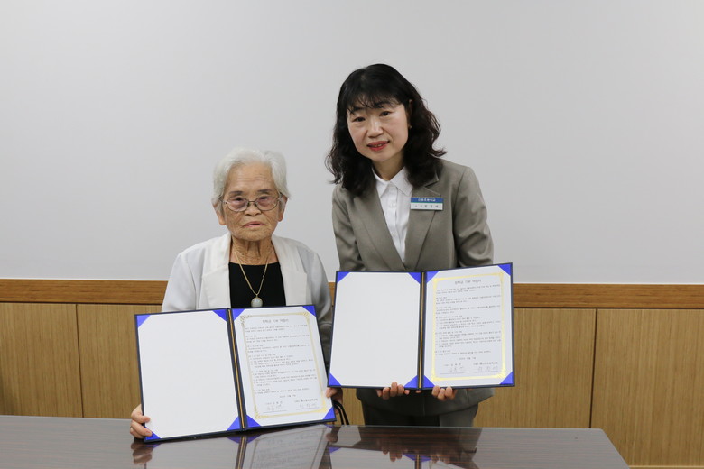 외식 할머니 김옥연 어르신(94세)은 이번 기탁식을 통해 산흥초등학교에서 꿈을 키워가는 학생들을 격려하고 학교 발전을 지원하기 위해 향후 6년 동안 매년 모든 졸업생에게 장학금을 지원할 예정이다.
