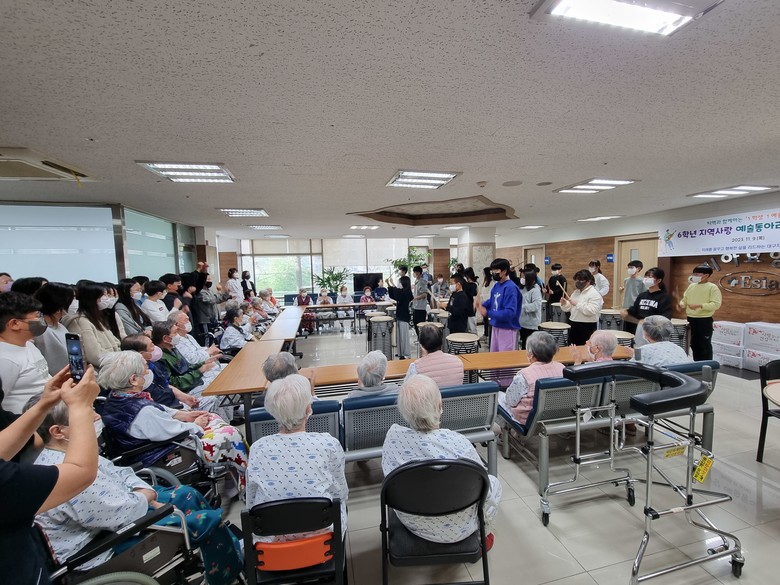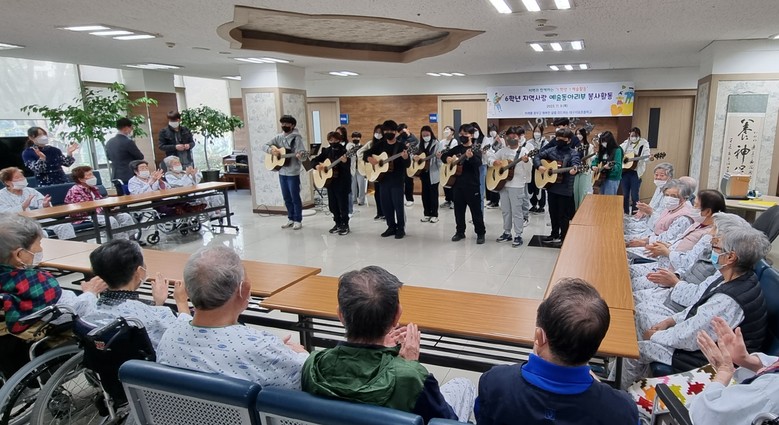 봉사 공연에 참여한 6학년 김예준 학생은 “어르신들 앞에서 공연은 처음이라 떨렸지만 호응이 너무 좋아 더욱 뿌듯했다. 우리 동아리가 멋진 공연을 준비해 내년에도 어르신들께 행복을 선사하는 시간을 이어가면 좋겠다.”고 소감을 전했다.