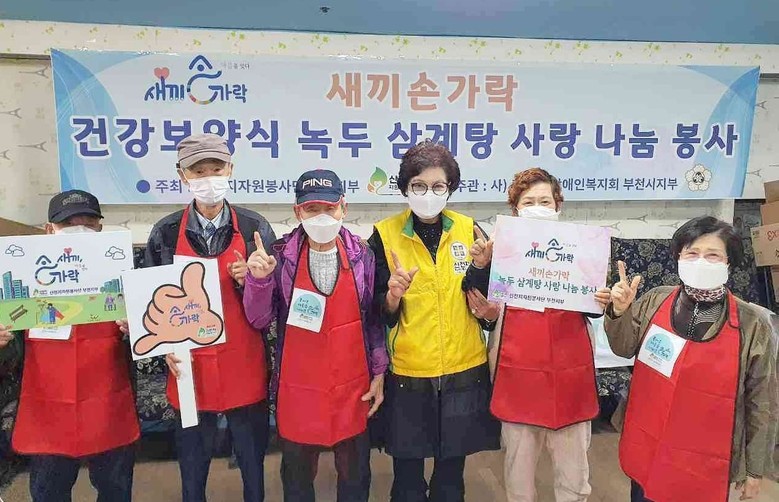 [세계타임즈 백진욱 기자] 지난 21일 신천지자원봉사단 부천지부(지부장 유영빈)가 사)장애인복지회 부천지부 회원 45명에게 ‘새끼손가락, 녹두 삼계탕 사랑나눔 봉사’를 실시했다고 24일 밝혔다.