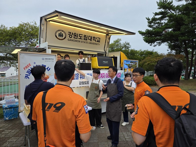 [강원도 세계타임즈=김민석 기자] 강원도립대학교(총장 최종균)는 9월 9일 아침 강북공설운동장 비상급수 운반차량 차고지에서 강릉시 장기 가뭄 극복을 위해 현장에서 헌신하고 있는 급수지원 소방대원들에게 커피와 음료, 빵을 무료로 제공하였다.