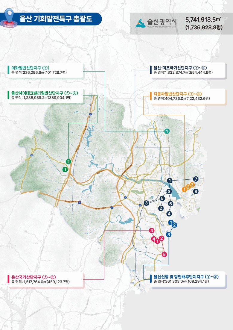 [세계타임즈=울산 이호근 기자] 울산시는 산업통상부가 2월 5일 발표하는 ‘기회발전특구 지정 통합 고시’에 따라 154만 2,990㎡(46만 6,000평)가 기회발전특구로 2차 지정된다고 밝혔다.