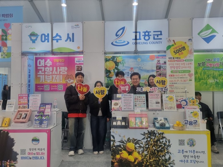고흥군 홍보부스에서는 고흥 유자·쌀 등 다양한 농특산물을 전시하고, 방문객에게 기부제 제도와 연말정산 안내를 제공했으며, 즉석 이벤트를 통해 소정의 기념품을 나누며 관람객과 소통했다.