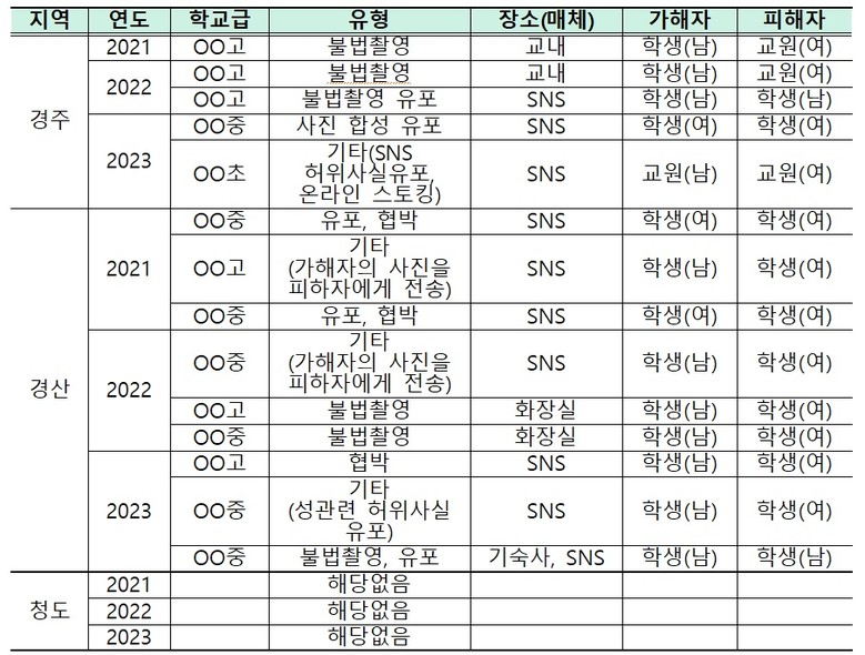 [표2]최근 3년(2021~2023) 디지털 성범죄 현황(경주ㆍ경산ㆍ청도 교육지원청 제공)