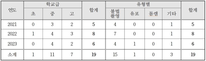 [표1] 경상북도교육청 최근 3년간 디지털 성범죄 발생 현황