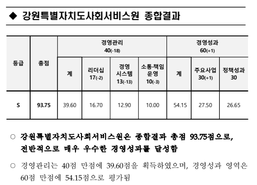 이은영 원장은 “이번 수상은 지난해에 이어 2년 연속 에스(S) 등급 달성한 값진 성과”라고 전하며, “앞으로도 강원형 통합돌봄 모델의 지속적인 확산을 통해, 지역 간 돌봄 격차를 해소하는데 앞장서겠다”라고 밝혔다.