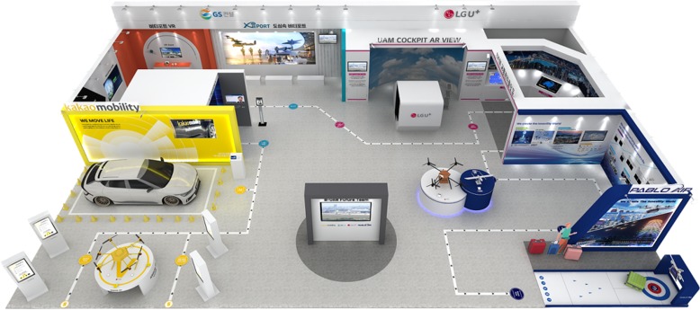 LG유플러스는 UAM 운항정보 공유 및 교통흐름 관리, 비행계획 승인 및 항로이탈 모니터링 서비스를 제공하는 교통관리 플랫폼을 증강현실(AR) 콘텐츠 형태로 전시한다. 체험 고객은 조종사와 관제사 관점에서 서로 실시간으로 교신하고 있는 상황을 AR글래스를 통해 생생하게 경험할 수 있다. 예를 들어 조종사가 회랑을 벗어나지 않도록 가상의 3D 상공뷰 영상에 AR로 회랑길을 보여주고 악기상이나 돌발상황 등에 즉시 대처할 수 있도록 관제 이미지를 띄운다.