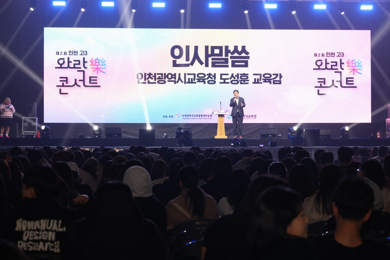 [인천 세계타임즈=심하린 기자] 인천광역시교육청평생학습관(관장 이재길)은 27일 송도컨벤시아에서 관내 고등학교 3학년 학생 4,500여 명이 참석한 가운데 ‘제2회 인천 고3 와락(樂) 콘서트’를 개최했다고 밝혔다.