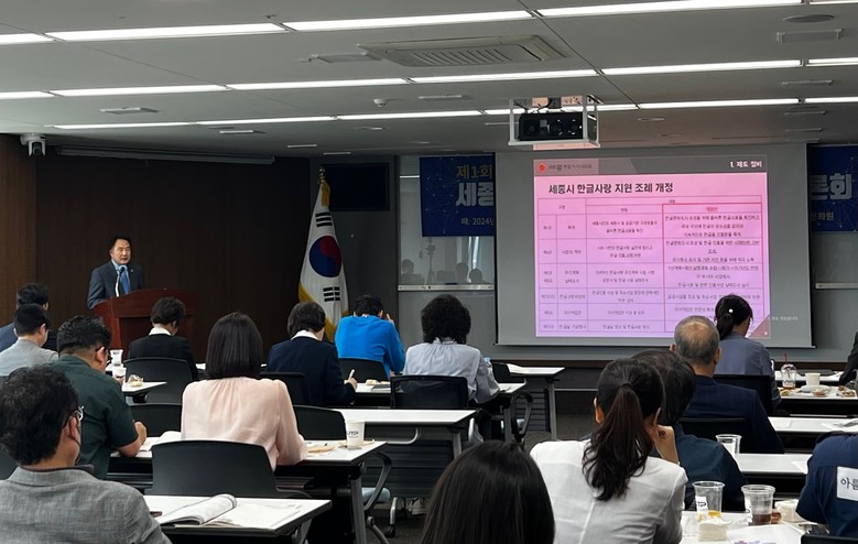 [세종 세계타임즈=이채봉 기자] 세종특별자치시의회 상병헌 의원(아름동, 前의장, 산업건설위원회)은 8일 세종시 5층 대회의실에서 열린 제1회 세종시 한글문화 수도의 꿈 특별 토론회에 참석하여 ‘시민과 함께 만드는 한글문화수도 세종의 미래’란 주제로 발제에 나서 세종시의 한글문화정착을 위한 제도 정비 방안을 제시했다.