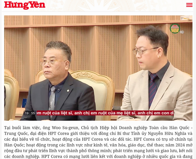 이어 베트남 국방부 직속 산하 기업을 방문하여 현역 군인으로 구성된 경영진과 ▲스마트시티 인재 교류 ▲기술·경제 협력 ▲국방·안전 역량 기반의 산업 프로젝트 등을 논의했으며,한중글로벌협회 부회장이 이끄는 기업 HPT Korea와의 정식 협약서 체결도 이루어졌다.