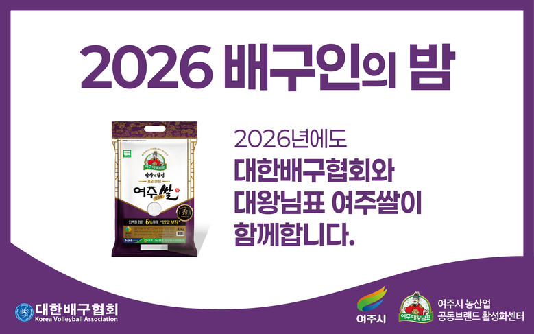 [여주시 세계타임즈=송민수 기자] 대왕님표 여주쌀이 2025년에 이어 2026년에도 대한배구협회 후원을 이어가며 대한민국 배구 발전을 위한 지원과 홍보 활동을 본격화한다.