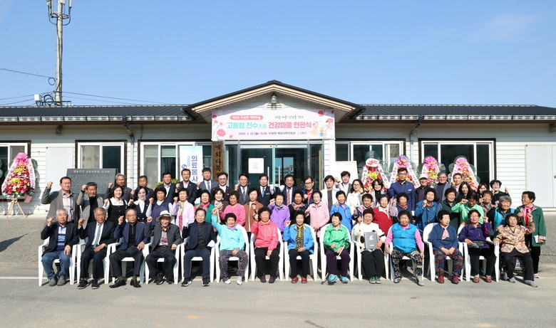 [고흥군 세계타임즈=우덕현 기자] 고흥군(군수 공영민)은 지난 23일 두원면 예회마을에서 공영민 군수를 비롯해 기관사회단체장과 마을 주민 등 100여 명이 참석한 가운데 ‘고흥형 천수(天壽) 건강마을’ 제3호 현판식을 개최했다고 밝혔다.