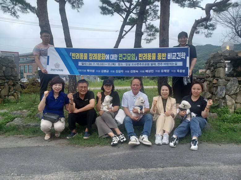 「반려동물 장례문화에 대한 연구모임」은 대표의원인 복아영 의원과 김행금, 김길자, 김명숙, 배성민, 육종영, 유영채 의원 총 7명이 정책연구를 펼치고 있으며, 특히 주목할 점은 전국 최초 ▲반려동물과 함께 한 비교 견학으로 연구모임 참여 의원의 반려동물 3마리와 함께 진행한 것이다. 참여한 반려동물은 체리, 춘식, 단풍으로 공공장례식장에서 반려동물 동반 여행지까지 전 일정을 함께 참여하며 교감을 형성했다.