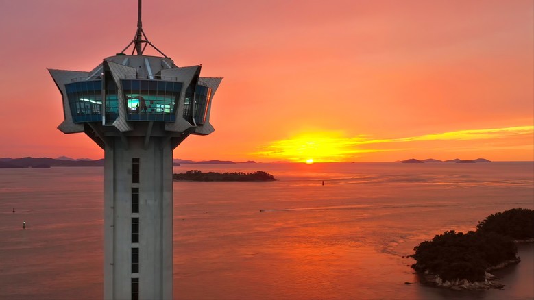 영광 칠산타워는 서해의 낙조와 칠산 앞바다를 조망할 수 있는 전망 명소다. 상층부 전망대에서 펼쳐지는 바다 풍경이 특히 인상적이다.