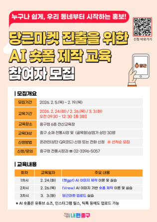 프로그램은 3월 9일부터 5월 16일까지 운영되며, 수강료는 무료이나 재료비는 학습자가 부담해야 한다.