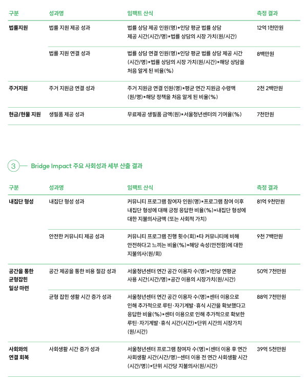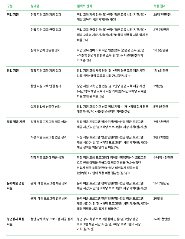 「서울청년센터 사회성과 측정 리포트」 자세한 내용은 서울광역청년센터 누리집(www.smyc.kr)에서 확인 할 수 있다.