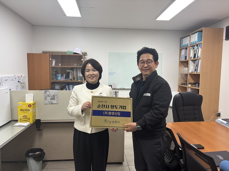[순천시 세계타임즈=우덕현 기자] 순천시는 지난 25일 순천시 향토기업으로 선정된 한솔영농조합법인과 ㈜동영산업에 인증현판과 인증서를 수여했다고 밝혔다.