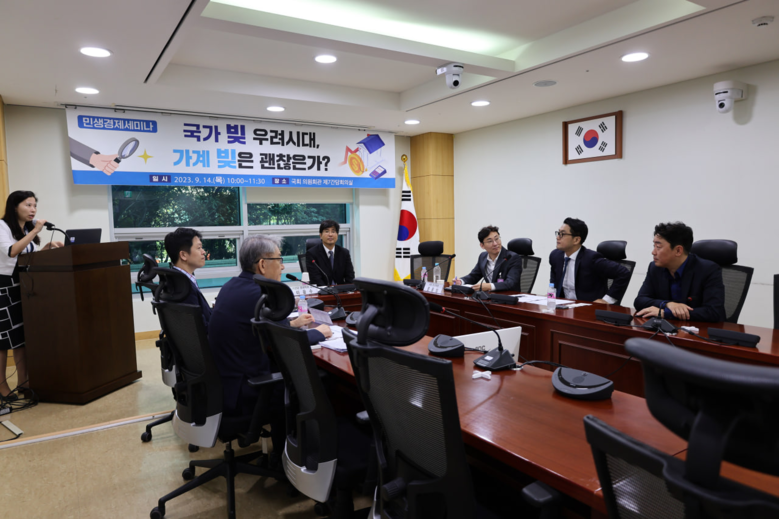 [세계타임즈 = 심귀영 기자] 더불어민주당 민생경제회복 TF 소속 강훈식 , 김한정 , 신영대 , 양기대 , 유동수 , 이장섭 , 홍성국 국회의원이 9.14 일 국회 의원회관에서 < 국가 빚 우려시대 , 가계 빚은 괜찮은가 ?> 라는 주제로 민생경제세미나를 개최했다 . 이윤수 서강대 경제학과 교수가 “ 가계부채의 지속가능성 : 코로나 19 이후 차주 단위 자료 분석을 중심으로 ” 라는 주제로 가계부채 자료를 분석한 결과를 발제하고 , 토론자로 정화영 자본시장연구원 연구위원 , 문윤상 KDI 연구위원이 나섰다 . 백웅기 상명대 명예교수가 토론의 사회를 , 허준영 서강대 교수가 자문위원으로 참여했다 .