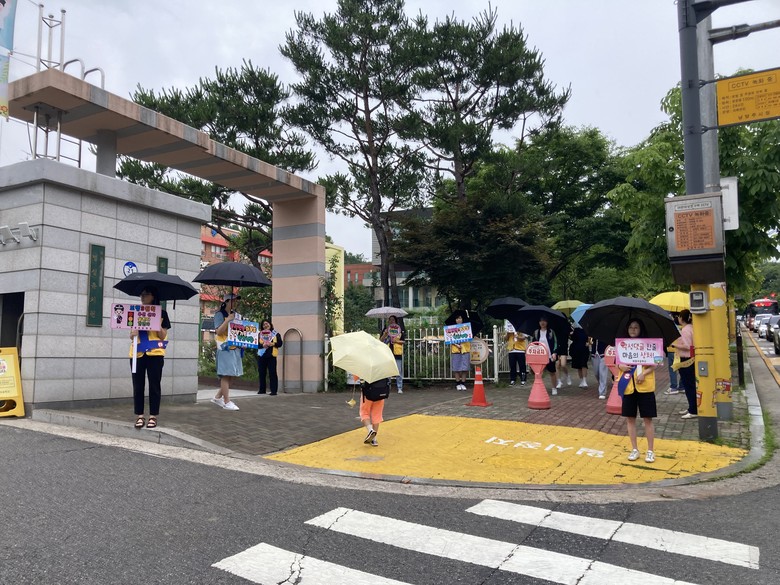캠페인 활동 당일 아침에 비가 내렸음에도 불구하고, 학부모회원들은 ‘따돌림, 괴롭힘 학교폭력 NO!’, ‘학교폭력예방, 입장바꿔 생각해요’ 등의 피켓을 들고 학생들에게 학교폭력의 문제점을 인식시키고 예방의 중요성을 알렸다.