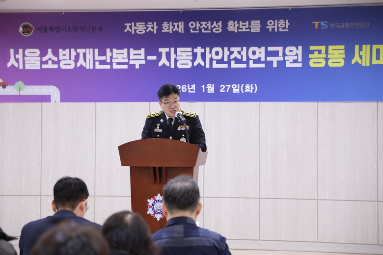 [서울 세계타임즈=이장성 기자] 서울특별시 소방재난본부(본부장 홍영근, 이하 본부)와 한국교통안전공단(이사장 정용식, 이하 TS) 자동차안전연구원은 27일(화) 서울소방학교에서 ‘자동차 화재 안전성 향상을 위한 공동 세미나’를 개최했다고 밝혔다.