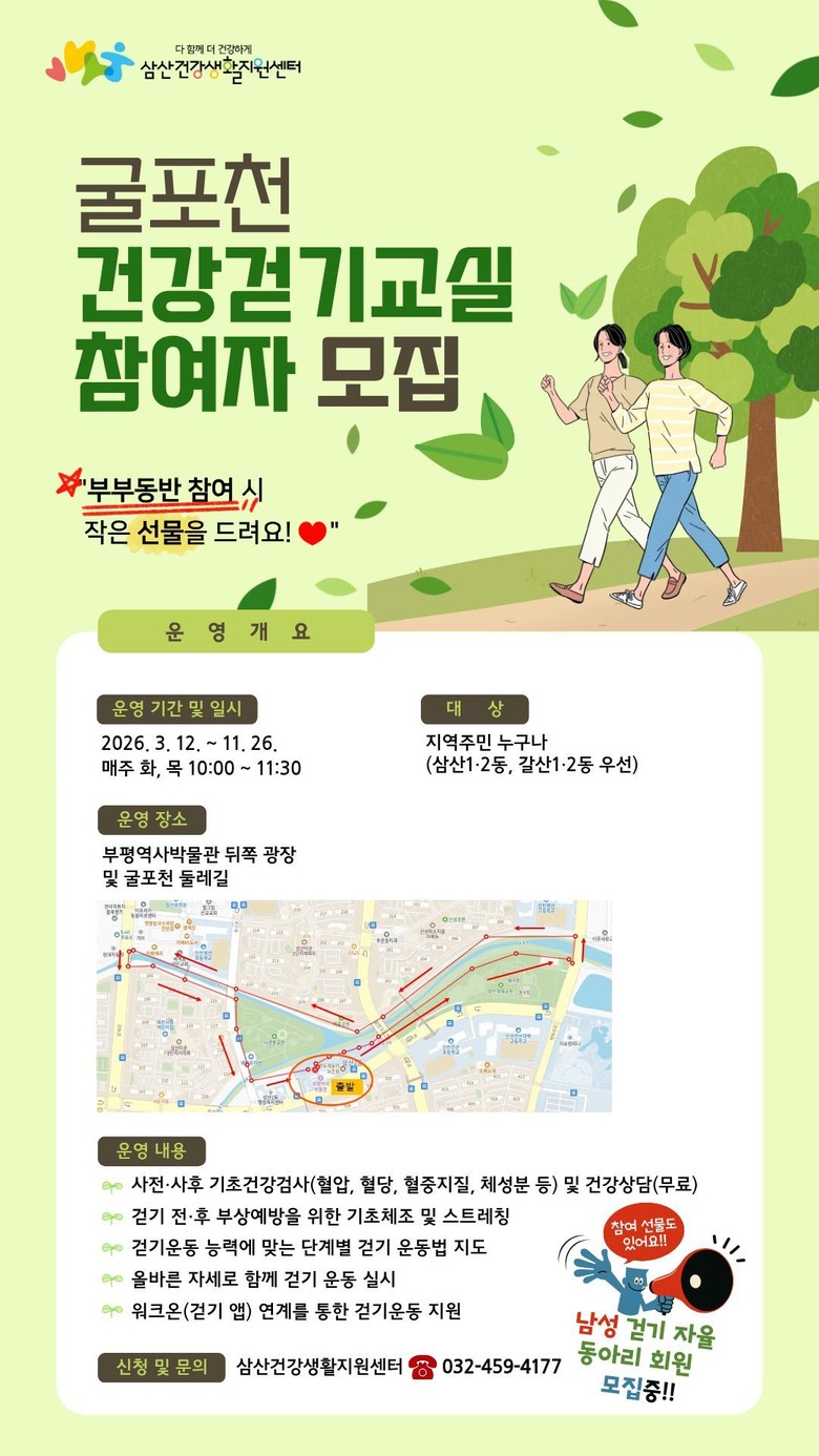 [부평구 세계타임즈=심하린 기자] 부평구보건소 삼산건강생활지원센터는 지난 11일 주민과 함께 ‘동네 걷기 좋은 길’ 코스 발굴과 지도 제작을 위한 주민건강모임을 추진했다고 밝혔다.