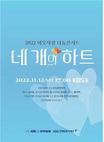 [세계타임즈 = 백진욱 기자] KBS와 KBS강태원복지재단이 ‘2022 이웃사랑 나눔콘서트’를 11월 12일 토요일 오후 5시 KBS홀에서 연다.