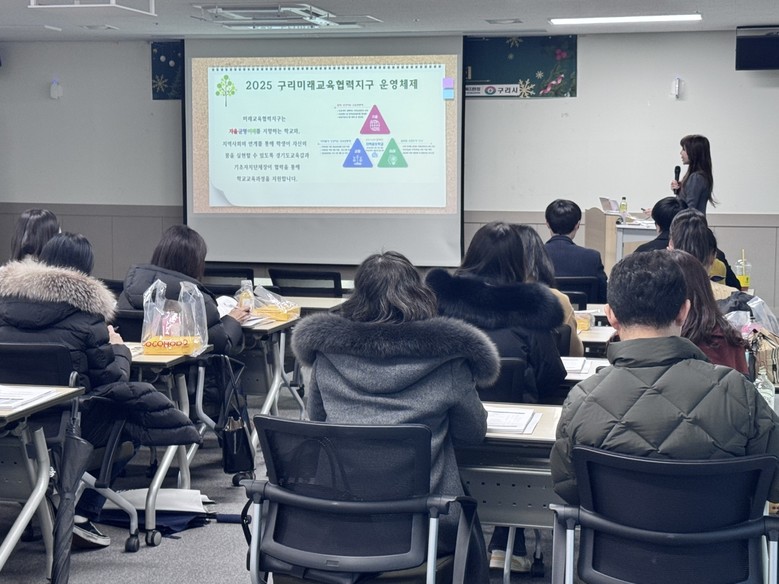 이날 행사에서는 ▲2025 구리미래교육협력지구 운영 결과 보고 ▲2026 구리공유학교 학교맞춤형 전환 방향 ▲학교 교육과정 연계 학생선택형(브릿지) 프로그램 운영 ▲2026년 지역교육협력 사업 안내 및 신청 방법 ▲교육경비보조금 예산 집행 및 정산 방법 ▲구리시 연계 사업 안내 등이 이루어졌다.