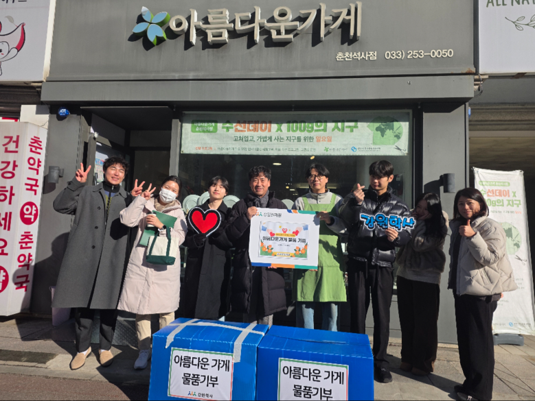 [강원도 세계타임즈=김민석 기자] 강원학사(원장 김학철)는 연말연시를 맞이해 직원과 학사생이 함께하는 「함께 나누는 작은 기적, 더 큰 희망」기부캠페인을 진행하며, 아름다운가게(춘천석사점)에 생활용품과 의류, 도서 등을 기증했다고 밝혔다.