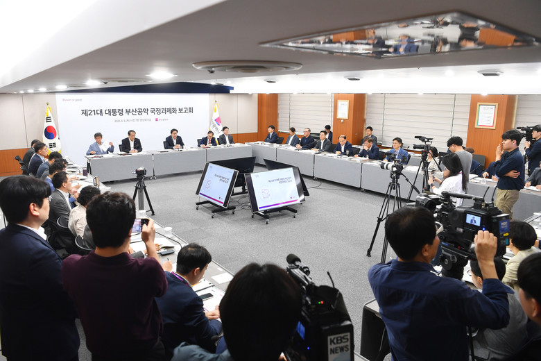 ◈ 새 정부 초반 '100일 골든타임' 적극 활용, 대통령의 부산 공약이 국가 핵심사업으로 구체화하도록 전방위 대응… 새 정부 국정과제화를 통해 글로벌 허브도시 기반 선점 [세계타임즈=부산 이용우 기자] 부산시(시장 박형준)는 제21대 대통령 선거 결과에 따라, 이재명 대통령의 주요 공약을 새 정부 국정계획에 반영하기 위해 오늘(5일) 오전 9시 시청 영상회의실에서 「제21대 대통령 부산공약 국정과제화 보고회」를 신속히 개최하고 민심 안정과 지역 화합을 위한 본격 대응에 나선다고 밝혔다.
