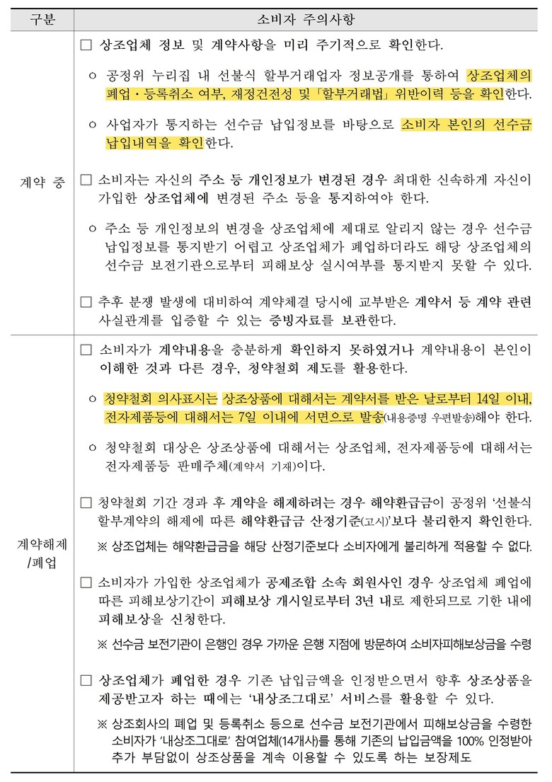 특히 소비자 계약해제 신청 시 지점 방문을 강요한 업체(7개사)에 대해 전화 해약 시스템 도입을 권고하고, 작년 3월부터 시행된 ‘고객 납입금 통지의무’를 위반한 업체(4개사)에 대해서는 과태료를 부과하는 등 ‘소비자 계약해제권’과 ‘고객의 알권리’ 보장에 중점을 뒀다.