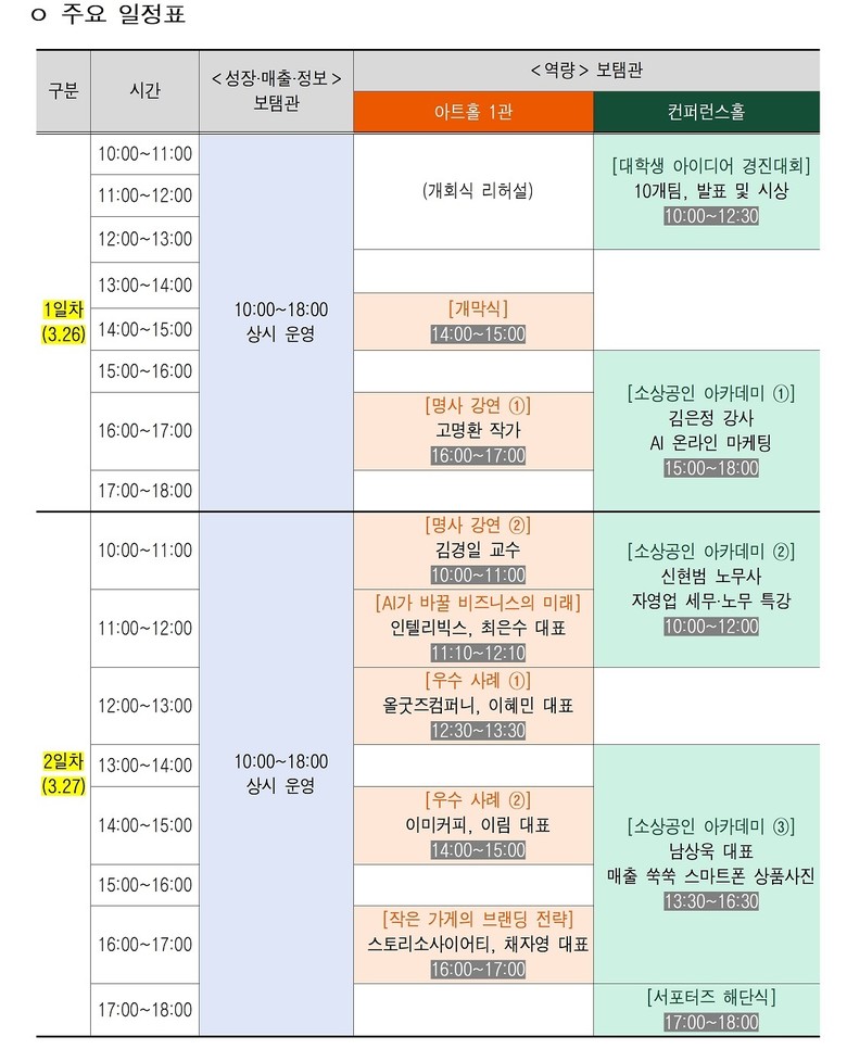 한편 박람회 개막식은 26일(목) 오후 2시 DDP 아트홀 1관 메인무대에서 열린다. 개막식에는 오세훈 서울시장을 비롯해 소상공인 단체와 유관기관 관계자들이 참석해 소상공인의 성장과 도약을 응원한다.