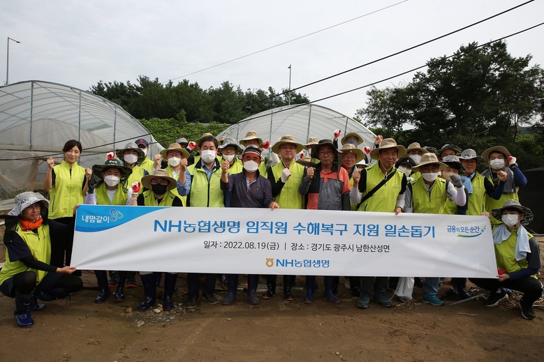NH농협생명 김인태 대표이사는 호우로 시설피해를 입은 농가를 찾아 피해상황을 듣고 시설복구를 위해 구슬땀을 흘렸다. NH농협생명 임직원도 무너진 하우스를 철거하고 내부 자재를 처리하는 작업을 실시하며 발 빠르게 움직였다.