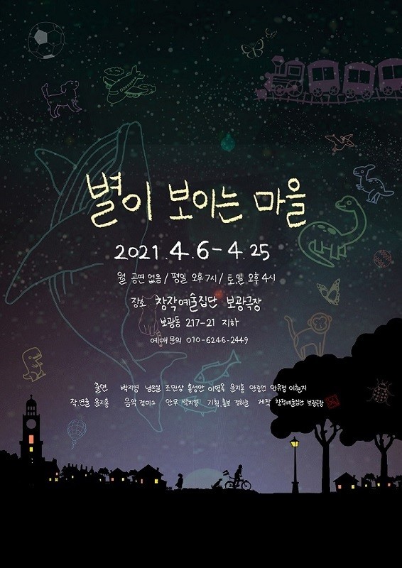 연극 ‘별이 보이는 마을’은 창작예술집단 보광극장에서 제작했다. 연출 윤지홍, 기획홍보 정하늘, 음악 정미소, 안무 박지영, 출연은 박지영 남은실 조민상 홍성안 이영옥 안중언 안유정 배우가 했다. ‘별이 보이는 마을’은 전체 관람가로 남녀노소 누구나 동심을 기억하며 함께 즐길 수 있는 작품이다.