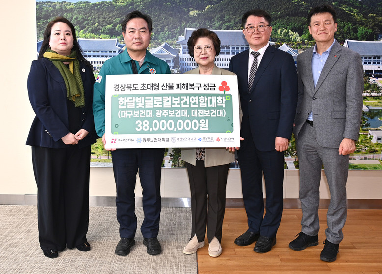 한달빛글로컬보건연합대학 10일, 광주보건대학교 오군석 부총장, 대전보건대학교 이정화 총장 등 연합대학 관계자들과 함께 경상북도청을 방문해 지난 3월 22일부터 경북 북부지역을 휩쓴 초대형 산불로 피해를 입은 이재민들을 돕기 위한 성금 3,800만 원을 전달했다.