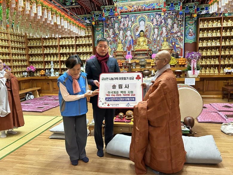 대한불교조계종 송림사는 매년 정월대보름과 부처님 오신 날을 전후해 사랑의 쌀을 기탁하고 장학금을 전달하는 등 어려운 이웃을 위한 나눔활동을 꾸준히 실천하고 있다.