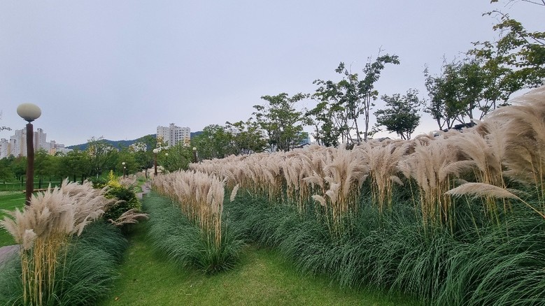 여름의 열기가 지나간 자리에 선선한 가을바람에 살랑거리는 팜파스그라스가 이루는 모습이 장관이다. 강아지 꼬리를 닮은 이삭의 독특하고 화려한 외관을 가진 팜파스그라스는 SNS 인생샷 명소로 관람객들을 끌어오며 사진작가들의 문의가 쇄도하고 있다.