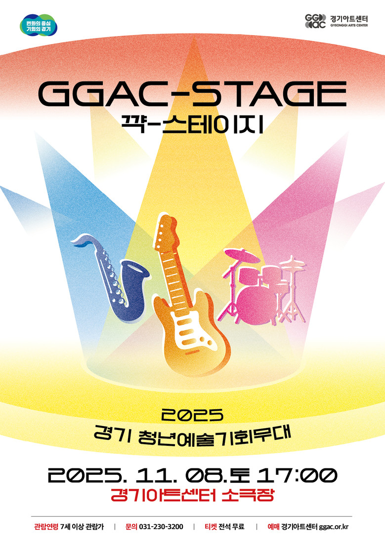 2025 경기 청년예술 기회무대 선발자들의 공연은 11월 4일부터 12월 26일까지 경기아트센터 소극장에서 진행된다. 음악(서양·한국·실용), 무용(한국무용·발레), 연극 분야별 순차적으로 열리며, 경기아트센터 홈페이지에서 일정을 확인할 수 있다. 티켓가격은 전석 무료다.