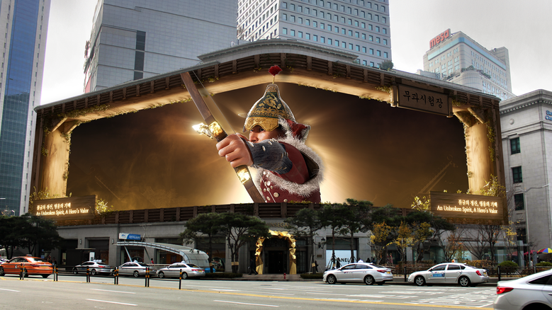 영상은 아나모픽(Anamorphic) 기법이 적용돼 금빛 파티클과 함께 펼쳐지는 백학(鶴)의 날개, 시대와 공간을 가로지르는 화살의 움직임 등 주요 장면들이 화면을 뚫고 나오는 듯한 입체감과 몰입감을 선사한다. 또한 초대형 LED 디스플레이에 최적화된 색감과 밝기, 입체 왜곡 보정 기술을 적용해 주·야간 모두 높은 가시성과 완성도를 확보했다.
