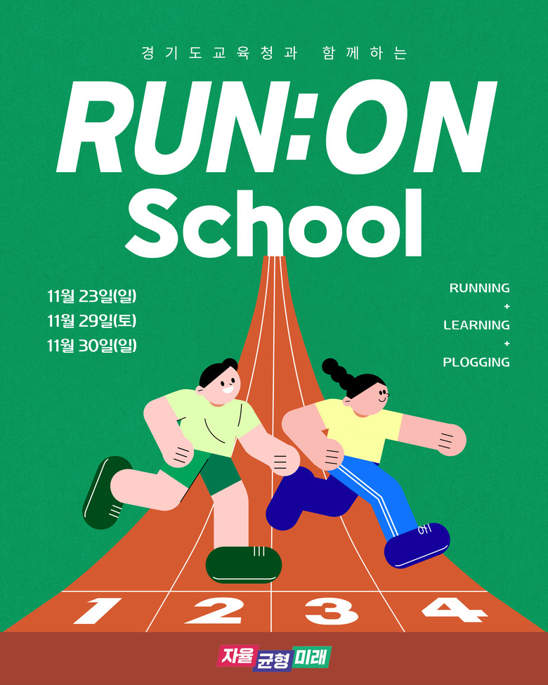 [경기도 세계타임즈=송민수 기자] 경기도교육청(교육감 임태희)이 학교시설 개방을 확대하면서 학교 특성을 이해하고 책임 있는 학교시설 이용문화를 확산하기 위한 ‘런 온 스쿨(RUN:ON School)’ 캠페인을 추진한다.