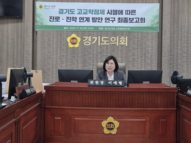 [경기도 세계타임즈=송민수 기자] 경기도의회 교육행정위원회 소속 의원 연구단체인 ‘교육행정연구회(회장 이애형)’는 20일 교육행정위원회 회의실에서 정책연구과제인 ‘경기도 고교학점제 시행에 따른 진로·진학 연계 방안 연구’의 최종보고회를 개최했다.