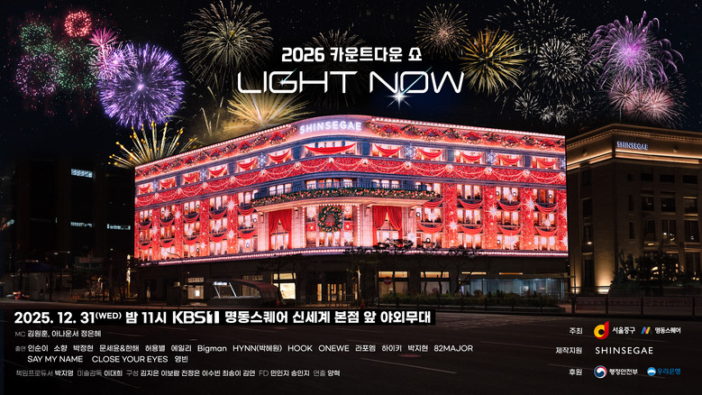 이어 밤 11시부터는 카운트다운 행사가 KBS유튜브와 KBS1TV로 본격 생중계된다. 신세계백화점 본점 초대형전광판을 가득 채우는 화려한 영상과 압도적인 연출로, 현장의 열기를 고스란히 전달한다.