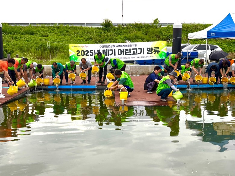 7월 16일 창원시 산남저수지에서 개최하는 방류행사에는 창원시 내수면 어업인(동읍 내수면자율관리공동체)을 비롯하여 연구센터 직원, 창원시 공무원 등 30여 명이 참여하였다.