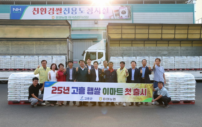 군과 흥양농협은 27일 흥양농협 미곡종합처리장에서 ‘바다품은 쌀’ 출하 상차식을 열고, 올해 수확한 조생종 햅쌀 10kg 1만 8천여 포대(약 180톤)를 전국 주요 이마트 매장으로 출하했다. 이어 9월 초부터는 10kg 포대 기준 매주 1만 포대(약 100톤) 물량을 안정적으로 공급할 예정이다.